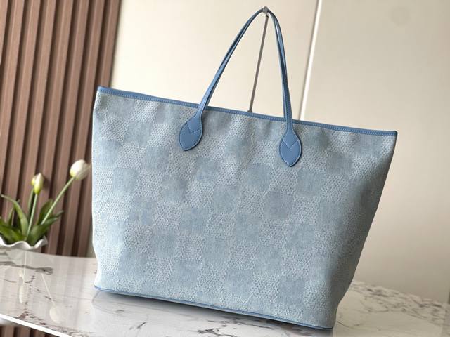 本款 Nevereverfull 托特包以 Damier Denim 3D 棉质帆布演绎别致格纹,借抛光金属件和皮革饰边展露俊逸风采。拉链开启充裕空间,与可拆卸棉质丹宁帆布口袋共同守护随身物品。尺寸:60 X 38 X 23 厘米 长 X 高 X 宽度