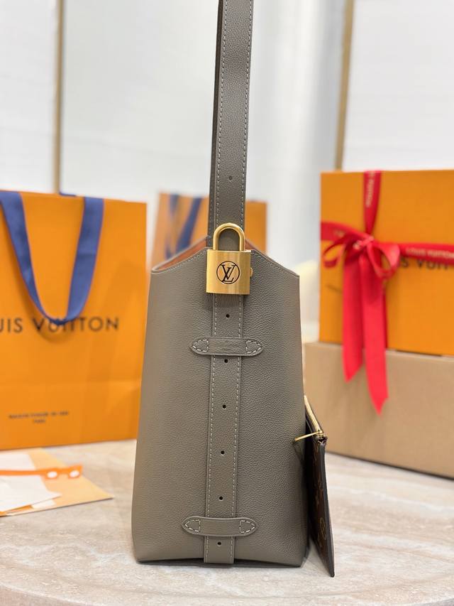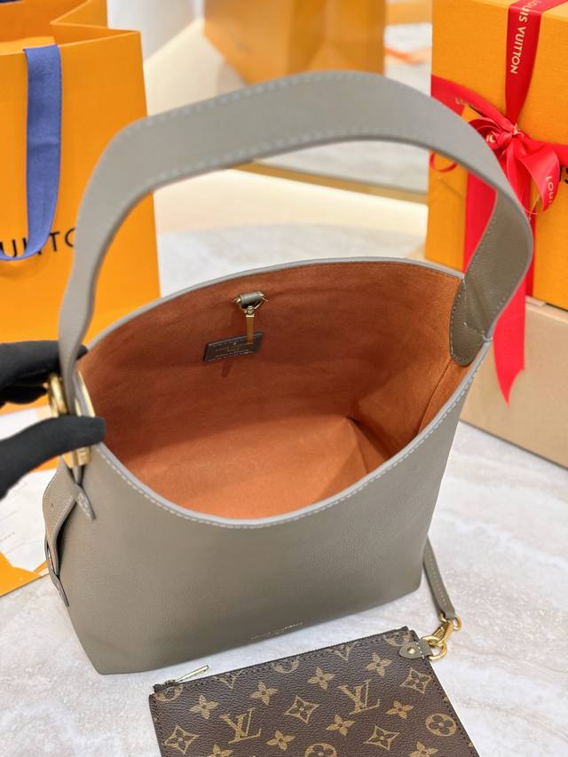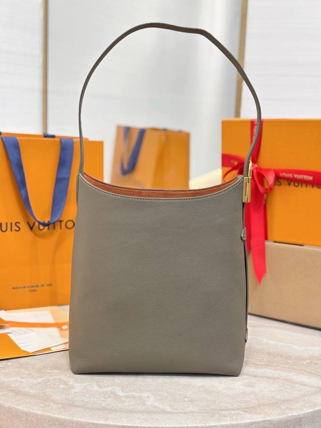 本款 Low Key Hobo 小号手袋取材柔软牛皮革 以做旧效果金属挂锁升级考究风尚 玲珑构型可轻松容纳日常所需 可拆卸 Monogram 口袋稳妥收纳贵重物品 手提 肩背或斜挎皆宜 Size:28X24X16Cm