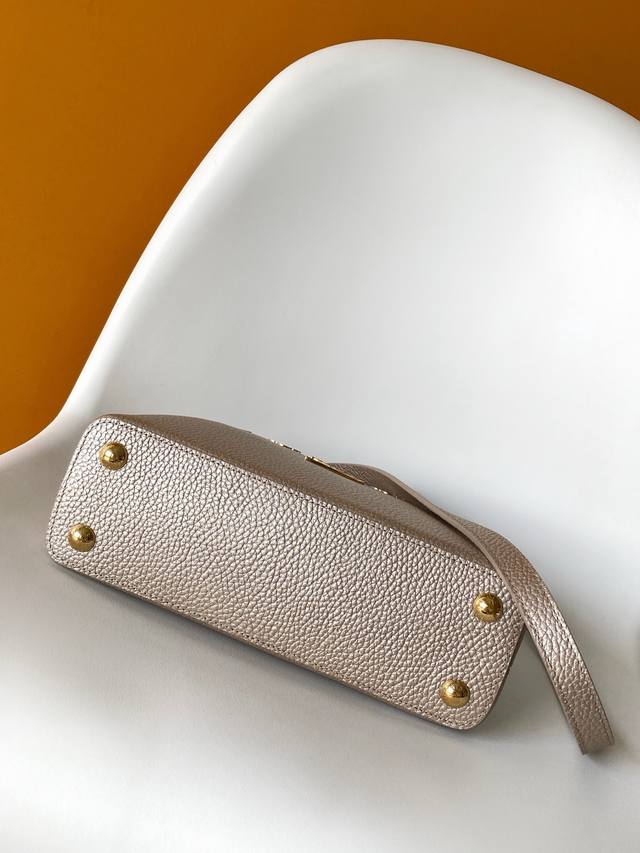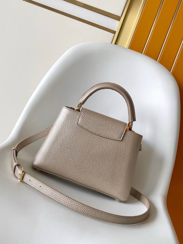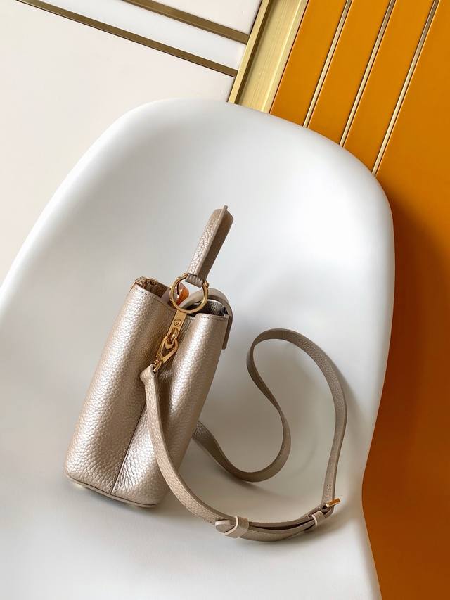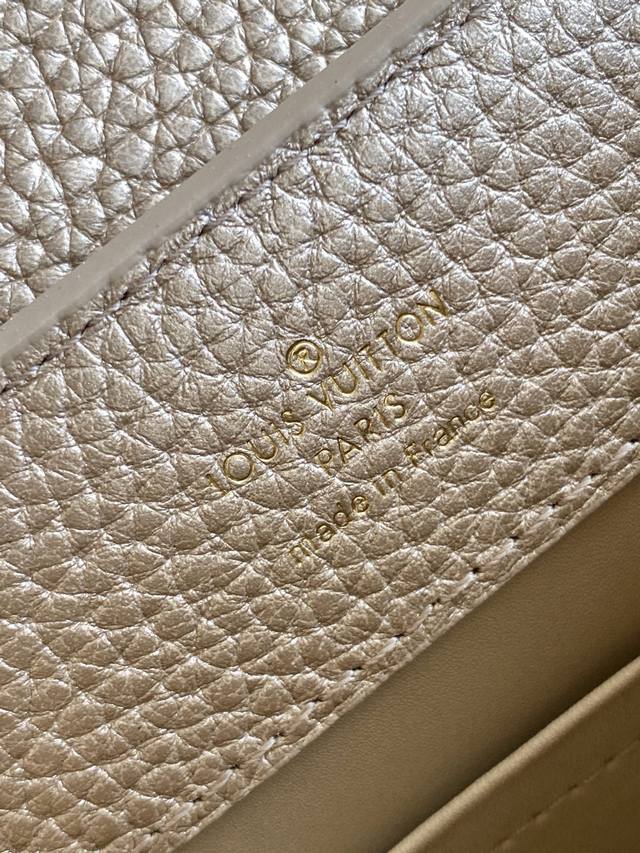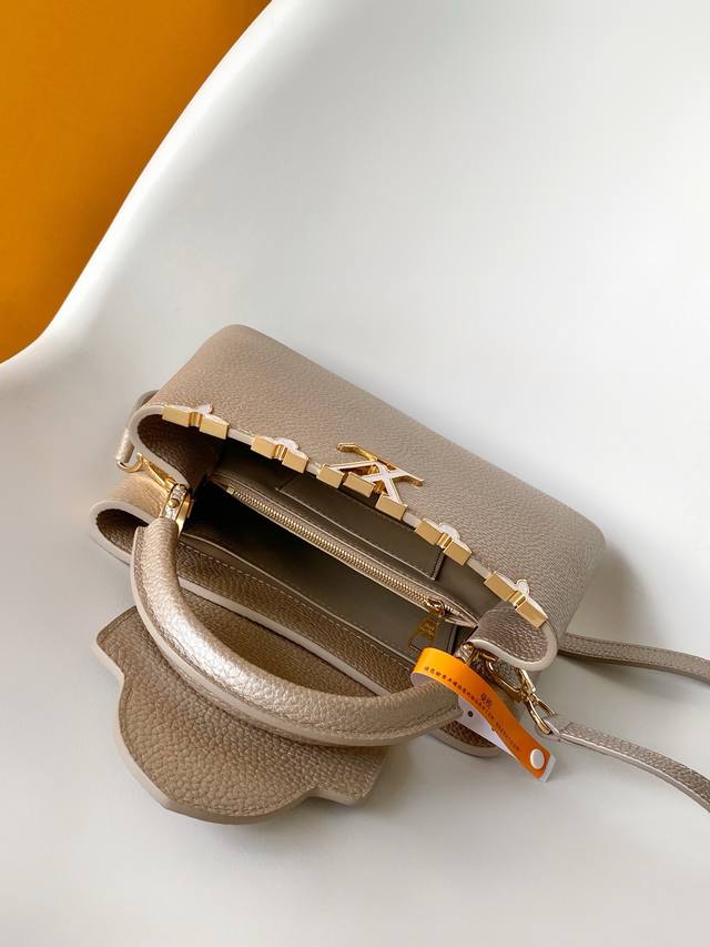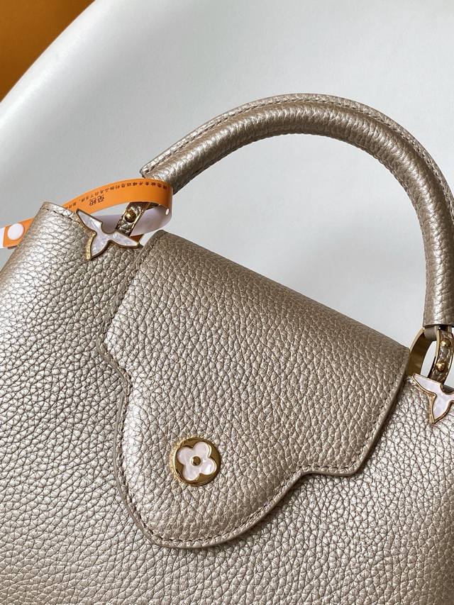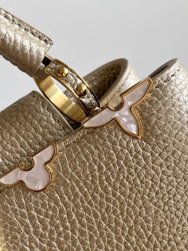 10166黑色16Cm 本款 Capucines Bb 手袋以莹润贝壳描绘 Monogram 花卉于上缘的悠然绽放,与宛如珠宝般的 Lv 字母互为映衬,彰显路易威登的柔美格调。顶部手柄和可拆卸纤细肩带提供多种背携选择。