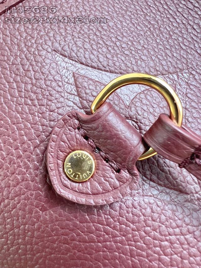 独家实拍 M45686酒红压花 本款 Neverfull 中号托特包为标志性 Epi 皮革铺陈 Monogram 图案,以可调节侧面饰带实现灵活收束。充裕空间配有可拆卸拉链袋,便于收纳 13 寸笔记本电脑及日常小物,成就都市出行和其他场合的经典之选。28 X 14 X 31 厘米 高 X 宽 X 长度