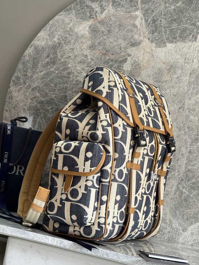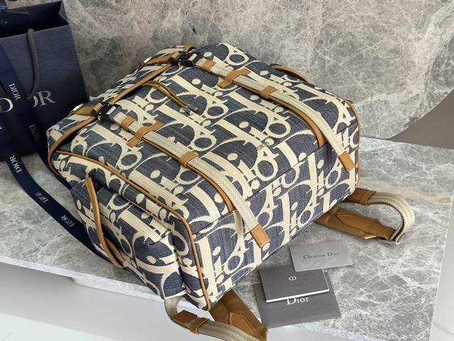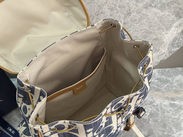 这款 Dior Hit The Road 翻盖双肩背包将现代风格与 Dior 的高订精神融为一体。采用酒椰草效果 Oblique 印花牛仔面料等材质精心制作,饰以蓝色提花刺绣,点缀以对比鲜明的米色缝线,全新演绎 Dior 经典标识。饰以棕色粒面牛皮革细节,翻盖搭配 Cd 迷你铝扣和两条人字形图案饰带,设有一个宽敞主隔层和两个带磁性翻盖的侧面口袋。款式实用,可优良搭配各式休闲造型。