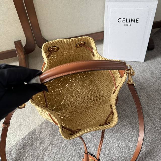 Celine Clara植物材料和牛皮革经典提篮包黄褐色