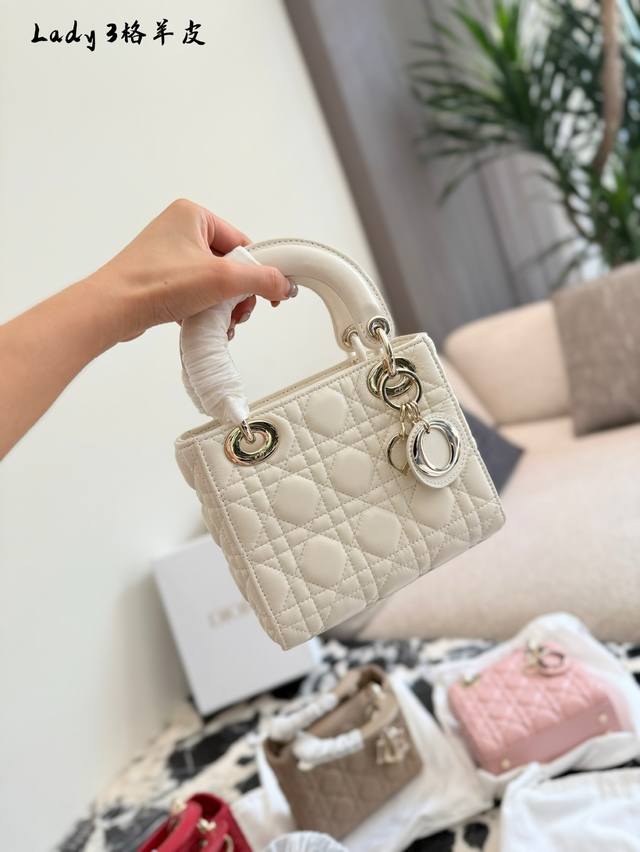 0980羊皮古铜色 Lady Dior 珍珠手拿包 这款手拿包是本季新品,顶部搭配手柄,优雅实用,令 Lady Dior...