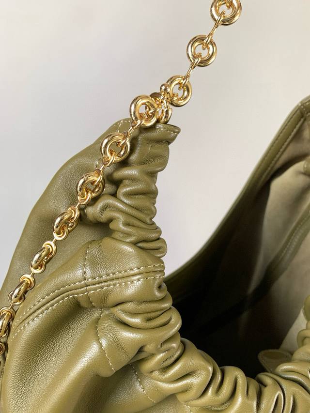 明星同款 中号纳帕羊皮革Squeeze手袋是款精致而柔美的全新手袋全新发布的 Squeeze 手袋采用柔软丝滑的Mellow纳帕小羊皮制作而成无衬里结构有效减轻包身自重观感上也更为轻盈弯月形包口以优雅的褶边收口,营造出轻松又随性的态度这款包包还有一大亮点是符合人体工程学的 Squeeze 气囊手柄搭配黄铜打造的精美甜甜圈链条可通过链环调节长短或添加延长链,实现手拎、肩背、斜挎等不同背法气囊手柄可自由滑动位置以提升舒适度链条底部点缀一枚 Anagram pebble 吊坠,为包包增添灵动细节