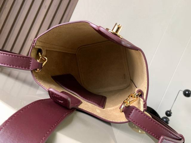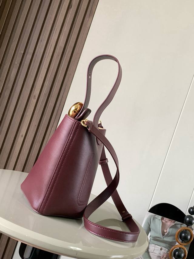 迷你柔软粒面牛皮革 pebble Bucket 水桶手袋pebble将纯粹的简约线条与瞩目设计风格巧妙融合造就别具一格的创新的手袋设计。标志性的 Anagram 雕刻五金件兼具装饰和实用功能,可调节肩带长度并适合多种携带方式,独特的扭曲结构与微妙的细节相得益彰。此迷你版本采用柔软粒面牛皮革制成。可斜挎、肩背或手提*可调节可拆卸肩带*磁扣开合*内袋*合成革衬里*