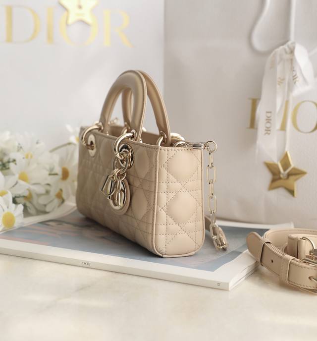 Ladyd-Joy手袋凸显Ladydior系列标志性的利落审美,体现了Dior对优雅和美丽的深刻洞见。款式精致典雅,以藤格纹缉面线打造绗缝细节。饰以浅金色饰面金属D1Or”吊饰提升格调,为精美的轮廓增添一分灵动。搭配一条可拆卸的链条肩带和一条可调节可拆卸的科技帆布肩带,可手提、肩背或斜挎,是日常造型的理想之选。