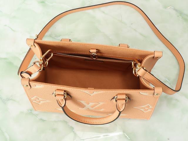 出厂价p 顶级原单 独家实拍 M12513杏棕丝印 M45653本款 Onthego 小号手袋为品牌经典压纹皮革描绘撞色 Monogram 图案,搭配耀目金属件,成就日常出行的雅致之选。顶部手柄和可调节肩带实现灵活背携。尺寸25.0 X 19.0 X 11.5 厘米 长 X 高 X 宽