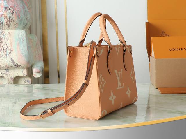出厂价p 顶级原单 独家实拍 M12513杏棕丝印 M45653本款 Onthego 小号手袋为品牌经典压纹皮革描绘撞色 Monogram 图案,搭配耀目金属件