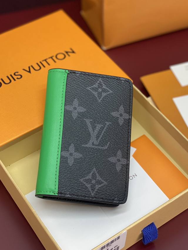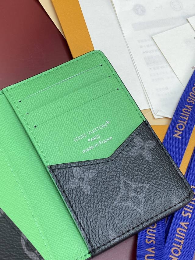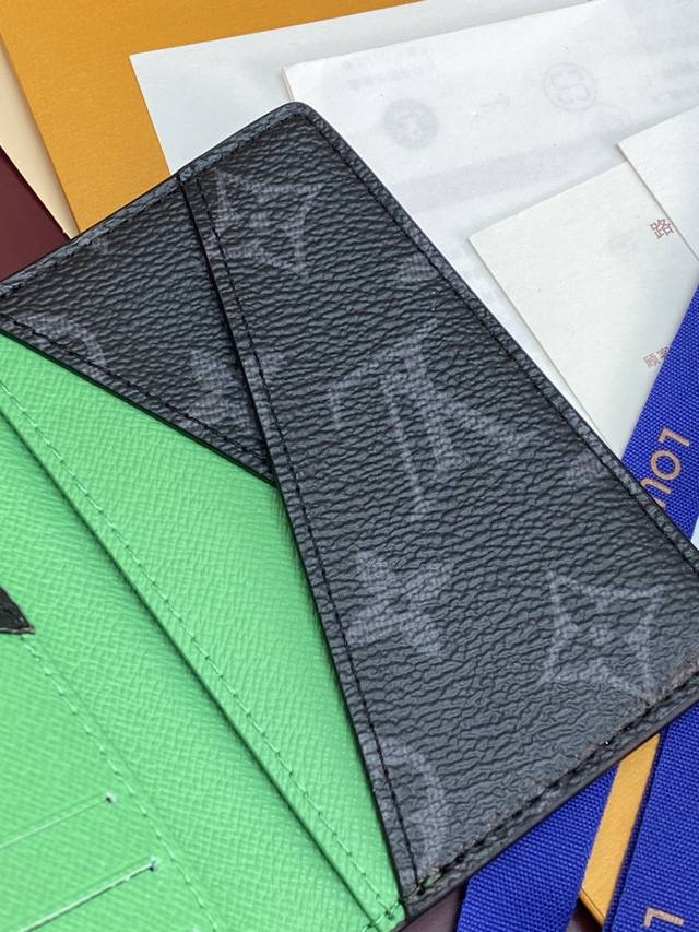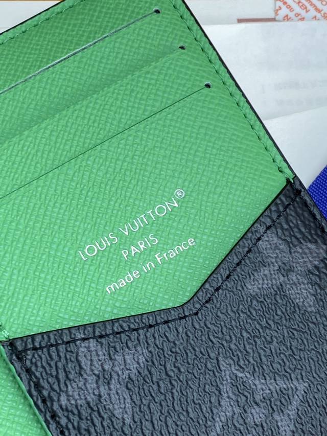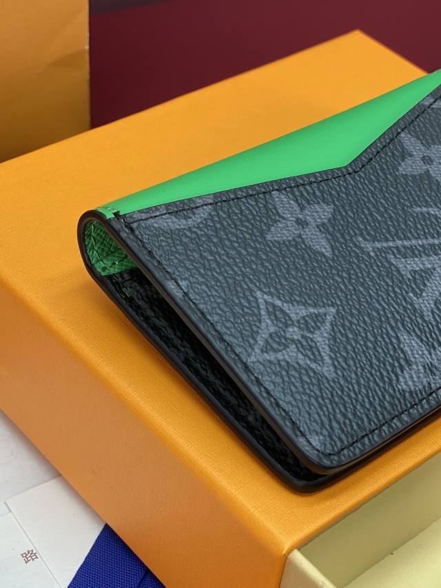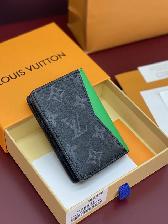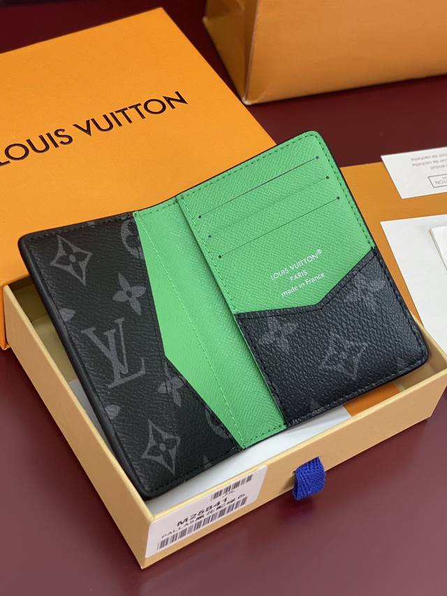 / 出厂价p M25841 绿色!口袋钱夹、本款口袋钱夹取材 Monogram Eclipse 涂层帆布,以明丽皮革饰边注入当季新意。精巧构型设有内袋、卡片夹层和外