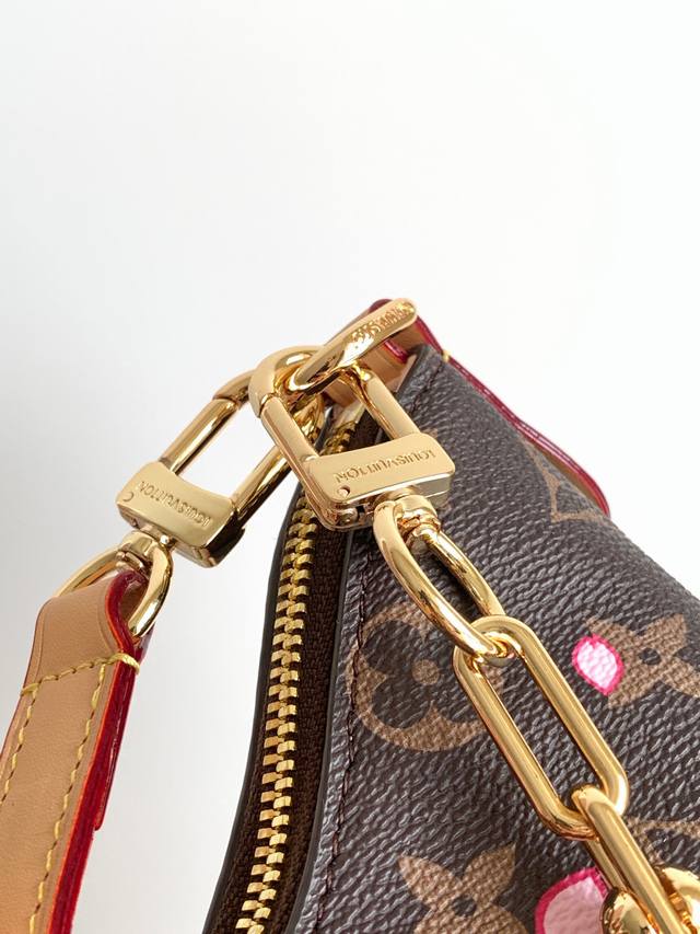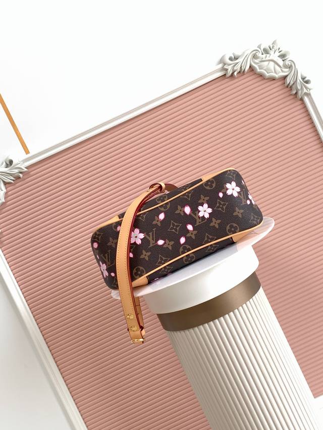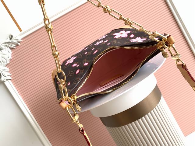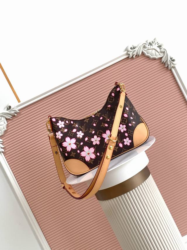 本款 Boulogne 手袋出自路易威登 X 村上隆复刻系列,以 Monogram 涂层帆布烘托 Cherry Blossom 图案的盎然生机。经典皮革塑造可拆卸铆钉肩带和包角,耀目金属件彰显考究格调。