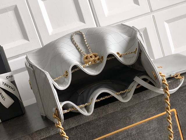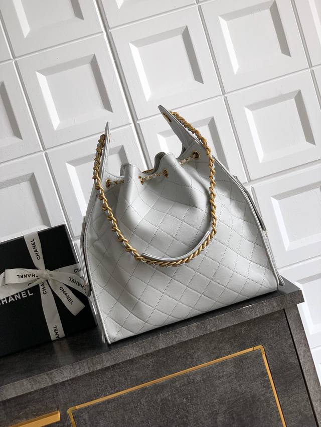 / 顶级原单 浅灰色 大號!Ohanel鱼子酱25S Hobo Bag抽绳水桶包鱼子酱小号√本季爆款一眼心动的Hobo这颜值简直逆天