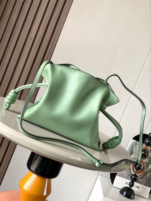 国庆特价 福袋迷你23Cm新款纳帕牛皮革Flamenco手拿包福袋采用拉绳收紧,并打上标志性的盘绕结这个版本采用纳帕牛皮革制成不得不说,这个品牌将皮质的柔软和实用主义都在Flamenco Knot上展现得淋漓尽致可以说是想要什么感觉都能在Flamenco Knot中找到了将抽绳包和托特包完美结合,带给女生们不一样的感觉虽然看上去简单不能再简单,但又很特别,随性有范这款包的名字与西班牙吉卜赛人的弗朗明戈舞蹈同名这恰好也代表着罗意威随性优雅又个性洒脱的设计风格皮料是光滑的西班牙小牛皮,手感特别软,反绒面皮革里
