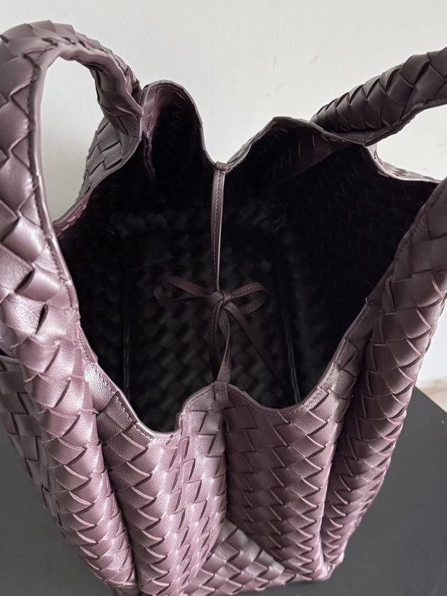 新品来袭!Bottega Veneta葆蝶家2025新品Campana肩背包上市啦~首先夸夸这款包包的自重,作为一款不算很小的包包,它非常的轻便日常,对于我这种出门需要携带很多随身物品的人来说这个优点真是太棒了,很大程度减轻了出行的负担在造型上有点像是Parachute和Jodie的结合体,钝钝的三角造型可爱憨厚,背出门逛街就是心情好的加速器,提手和包身都是经典编织,在原本的敞口设计上加了系带,如果没有系起来,包包拎起来就会有小菜篮的造型哦 款号:844250 尺寸:39*24*18.5Cm