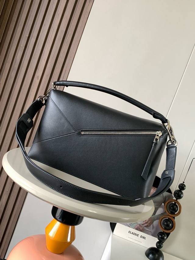 原厂皮 新款大号几何包36Cmpuzzle手袋~原厂进口荔枝纹牛皮 罗家爆款几何包Puzzle 手袋是创意总监乔纳森 安德森 Jonathan Anderson 为 L0Ewe 推出的首款手提包包长方体形状和精确的切割技术创造了Puzzle 独特的几何线条简约大气的几何设计时髦中带着股酷劲,可甜可盐原厂荔枝纹小牛皮 包型都不变型手感舒适得没话说上身气质立马Up~立体包型还蕴藏着非凡的容量是永远都囤不够的热门单品 尺寸:36Cm~23Cm~19Cm 款号:9054 颜色:黑色平纹