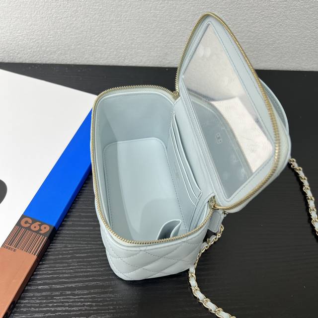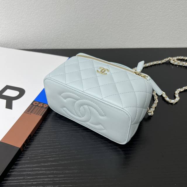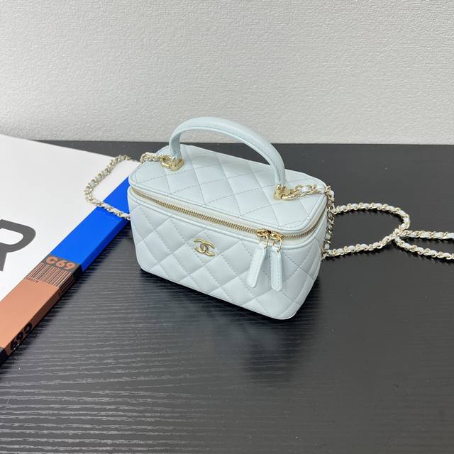 / 原厂皮 出货 新色 手提盒子包 绵羊皮 浅金五金 可手提斜挎 最新版 整体没有大的改动 底部改为标志性 Logo 内里改为全皮 防伪标签也改版升级 尺寸:17C