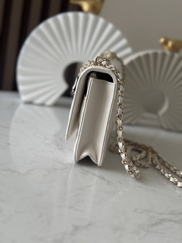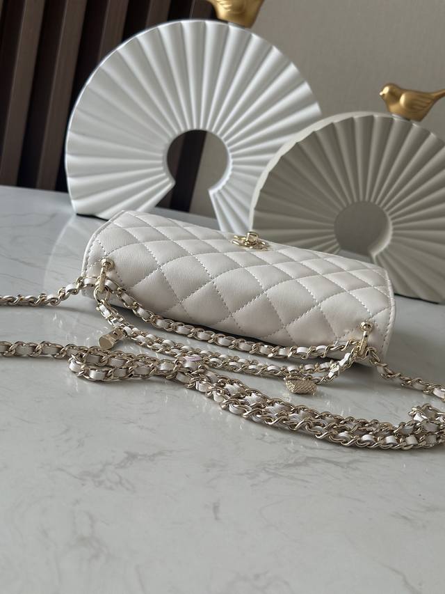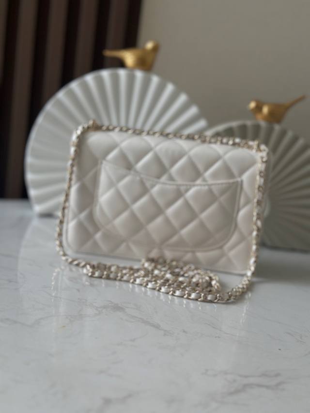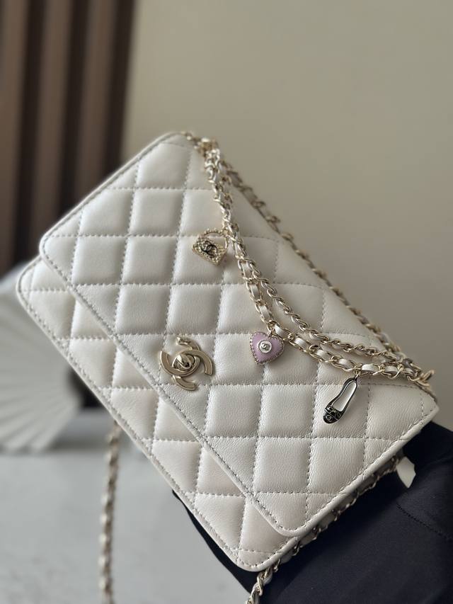 芯片版Chane12025春夏Chanel 太懂少女心2025年春夏的轻巧俏 皮又精致,采用珠面小羊皮,搭配经典的菱格纹和金色 Clogo。手袋上还有一个粉色心形,搭配金色链条,让人一见倾心,入坑还可 以侧背或肩背,容量也不错,纸巾都可以放进去,通勤日常都Ok 款号:66051 白色 尺寸:19.5*13*3.5