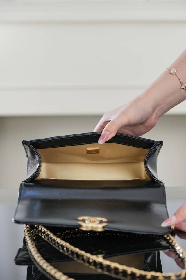 / 原厂芯片版 原厂小牛皮 双金球 黑色 法国原厂光面小牛皮手感细腻且有光泽感. 做旧五金搭配全新升级金色内里延续了香奈儿手袋一直以来的美感与实用性,兼顾力量与优雅