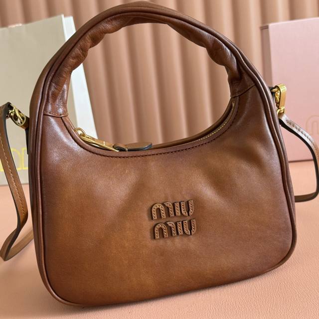 配全套原厂专柜包装 Miumi新品Miuwander手袋,全新大胆设计,采用顶级进口擦色做旧小牛皮,复古磨砂五金,利用圆孤的曲线,保留了应有的俏皮感,表达运动优