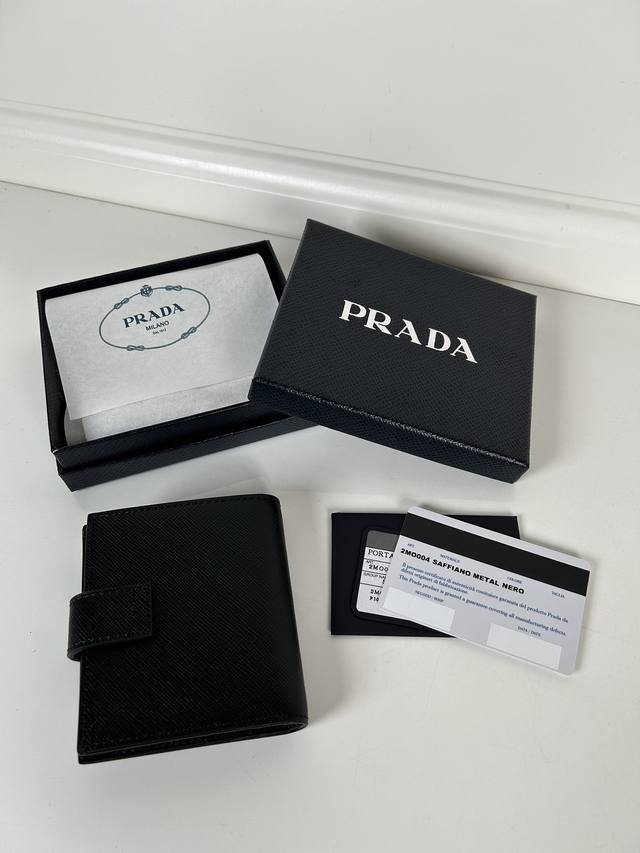 P家男女通用短款钱包,型号2Mo004,十字纹牛皮制作,最新微标小三角制作,按扣开合更加实用,设计简约大气,八卡位,长度9Cm高度10Cm,175钢印,做工细致工整如图可见