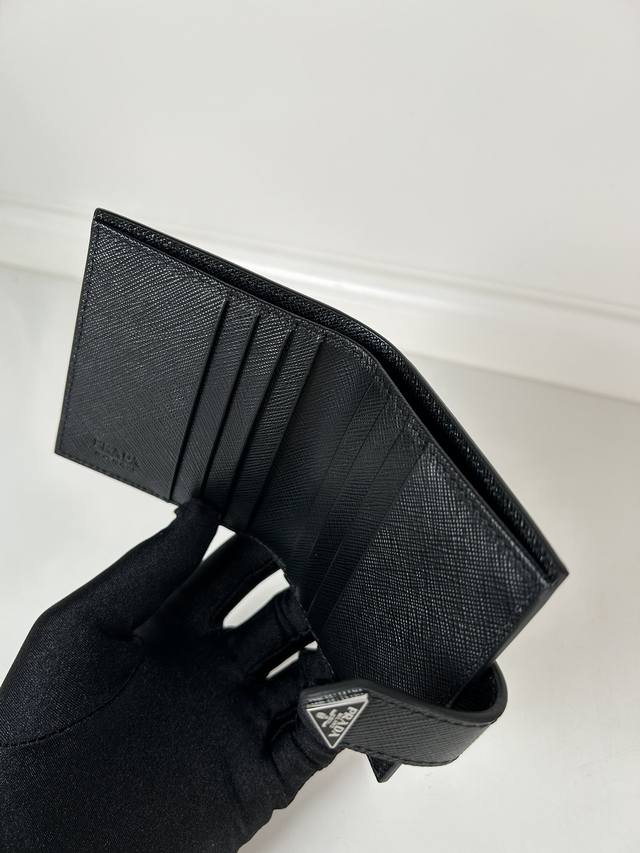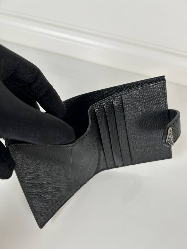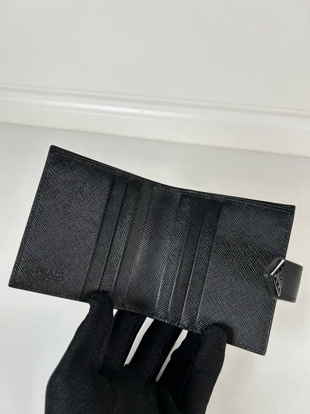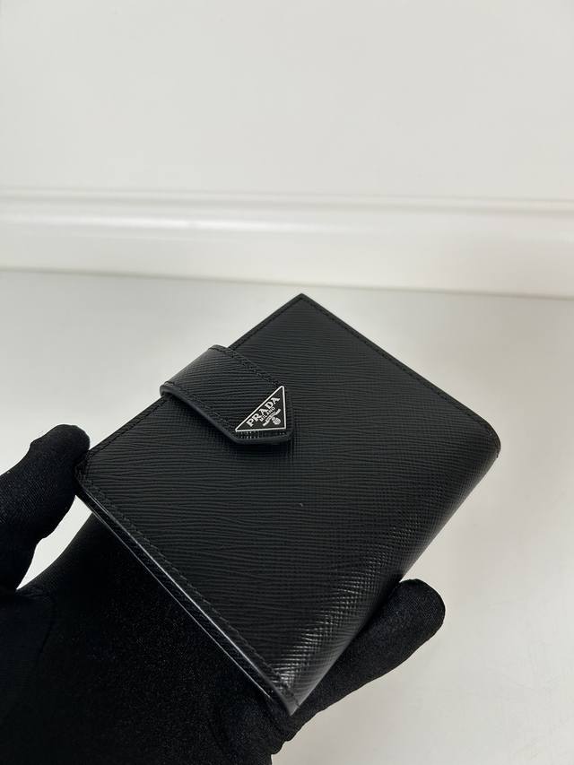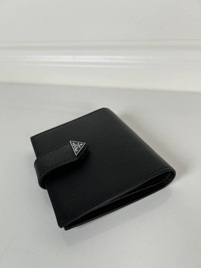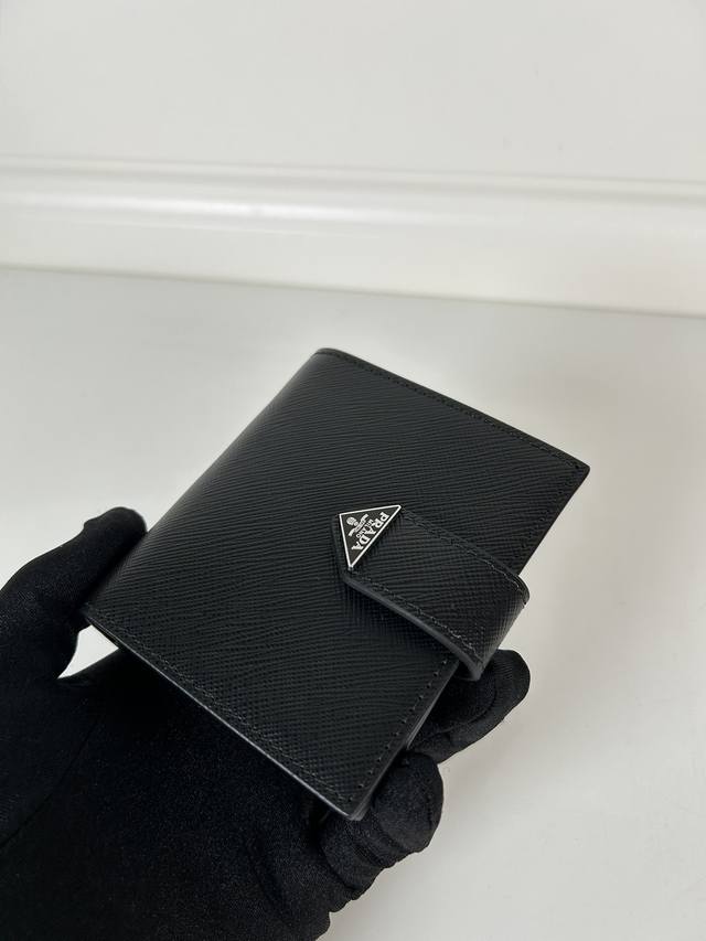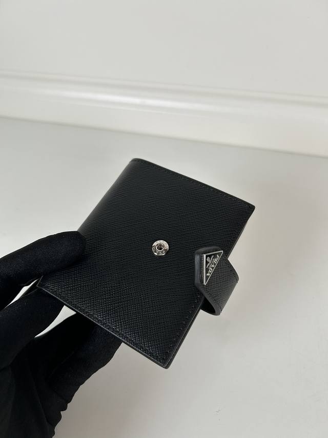 / P家男女通用短款钱包,型号2Mo004,十字纹牛皮制作,最新微标小三角制作,按扣开合更加实用,设计简约大气,八卡位,长度9Cm高度10Cm,175钢印,做工细致