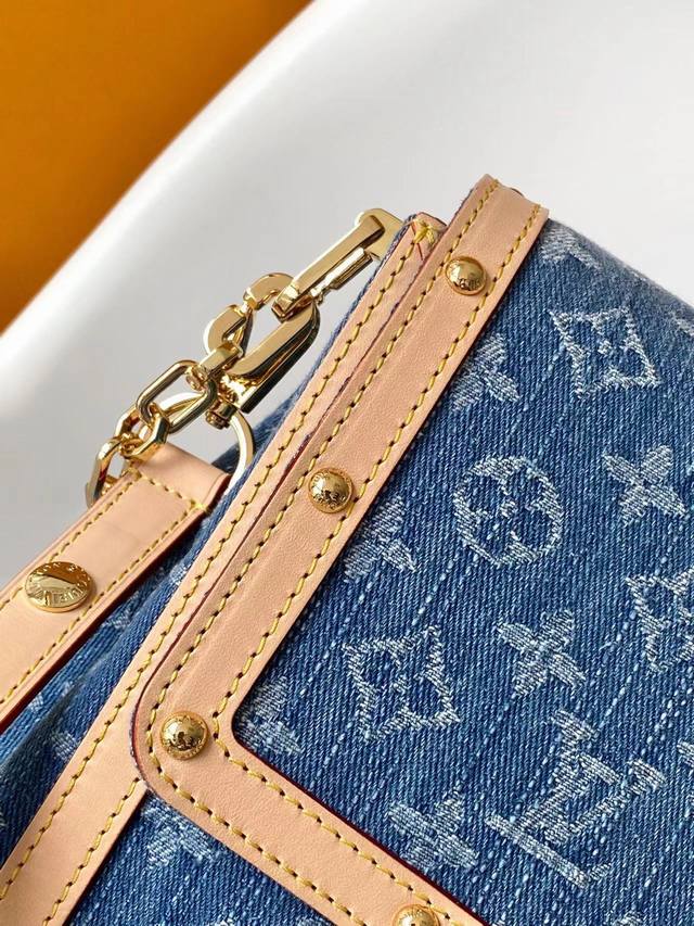 顶级原单163芯片 M13319蓝色 丹宁牛仔链条包大号达芙妮 Lv X Tm Dauphine Soft 手袋 本款Dauphine Soft大号手袋选用棉质丹宁织就 Monogram 图案,经漂白和砂洗后呈现复古风范。牛皮革饰边定格经典韵致,耀目Lv锁扣于正面标注品牌身份,拉链内袋再添功能考量。尺寸:28×20X11厘米。