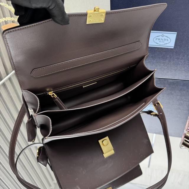顶级原单 新品走秀款1Bn023小牛皮 这款皮革手袋灵感源自挺括硬朗、简约正式的公文包,以全新态度重释经典办公风格廓形。采用精致柔和细节设计,为经典造型注入温婉