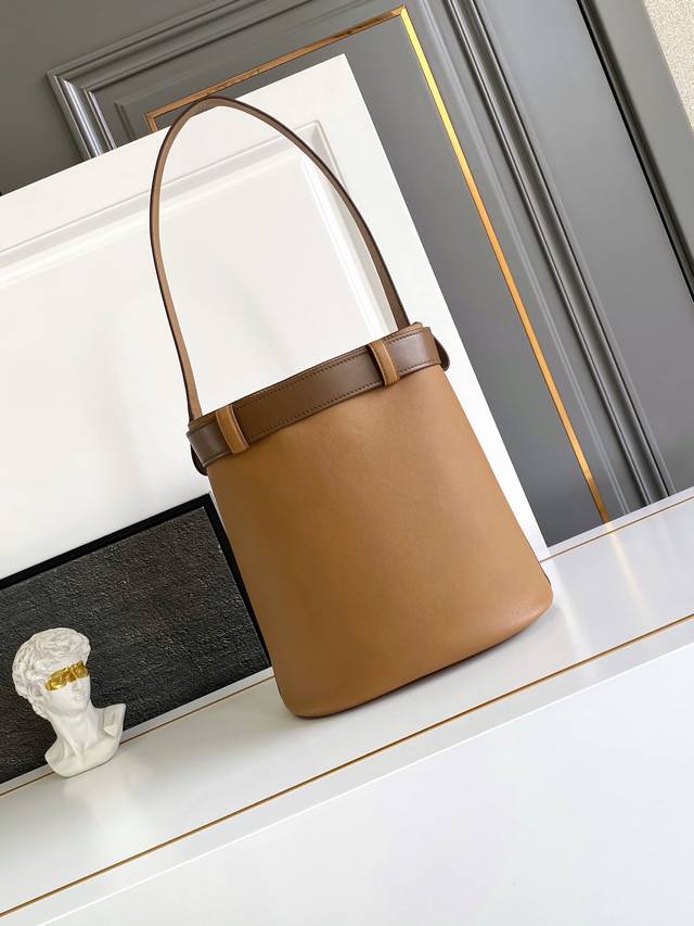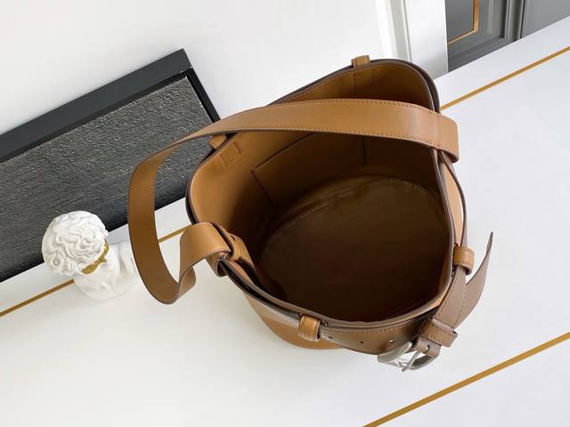/ 新款水桶包 这款时尚水桶包廓形新意诠释Buckle手袋,采用进口小牛和内进口羊皮。配带有可拆卸经典搭扣的皮带,又可以另外搭配衣着。为现代百搭设计点睛。空间大,实