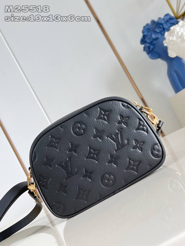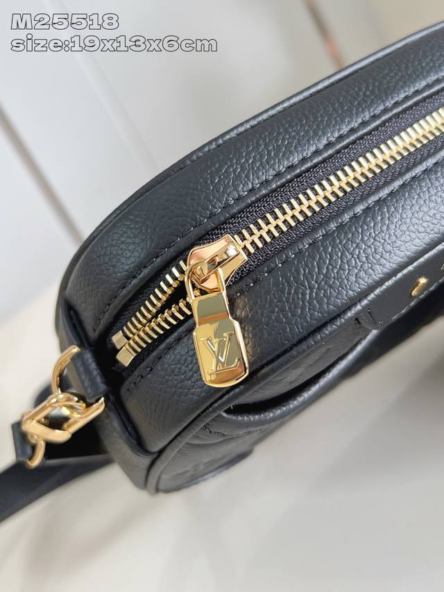 出厂价P 顶级原单 M25518黑压花 Monogram Empreinte系列推出了这款具有永恒色彩的Tiny Camera Bag。这款手提包由牛皮制成,采