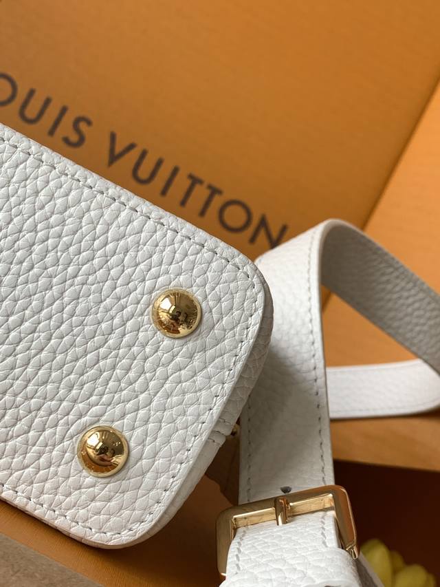 / 出厂价P 特级全钢 M11906 白色金 进口牛皮动态芯片 本款 Capucines Bb 手袋出自 Trilogy 系列,以 Taurillon 牛皮革和耀目