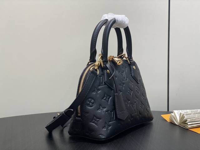 原单精品 M26409黑色 全皮压花贝壳包 Alma Bb 手袋 散发着巴黎人优雅气息的阿尔玛Bb Alma Bb 。光滑且非常柔软的House的Monogram Anp-Flunpe皮革材质。从1934年推出的方形手提包中获得灵感,原封不动地包含结构性的轮廓和签名基贝尔和帕德洛克的感性设计。可以用多种方式造型的单品。精致的金色硬件。23.5 X 17.5 X 11.5厘米。