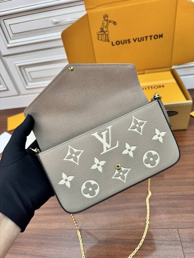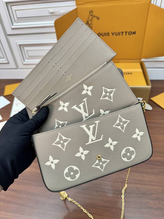 M45836灰色 M45813黑色 M45859黑印M46393白印粉Favorite 手袋Favorite 手袋为柔软粒面皮革压印超大 Monogram 图案