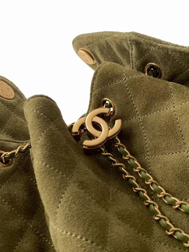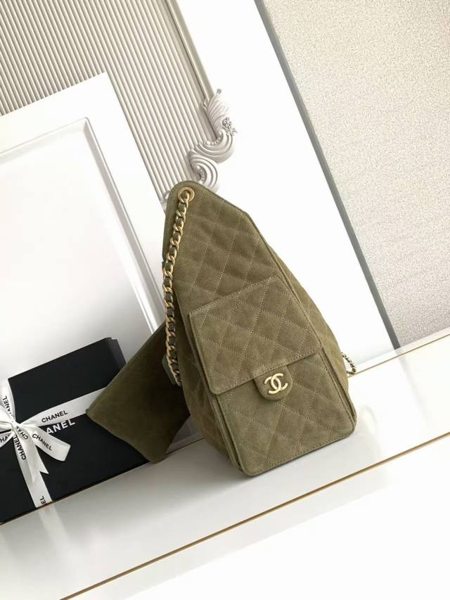 As5311Chanel 25款又一个以年份命名的款, 25C反绒皮嘻哈包 香奈儿Hobo 腋下包 嬉皮腋下包大号 复古金币纽扣抽绳水桶包+菱格纹+复古黑金 经典链条设计,高级感十足!日常出行必备,外观精美,质感细腻,无论休闲装还是正式场合都能轻松驾驭 尺寸:40X30X15Cm