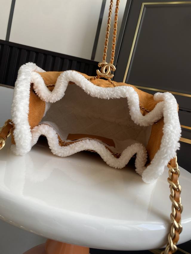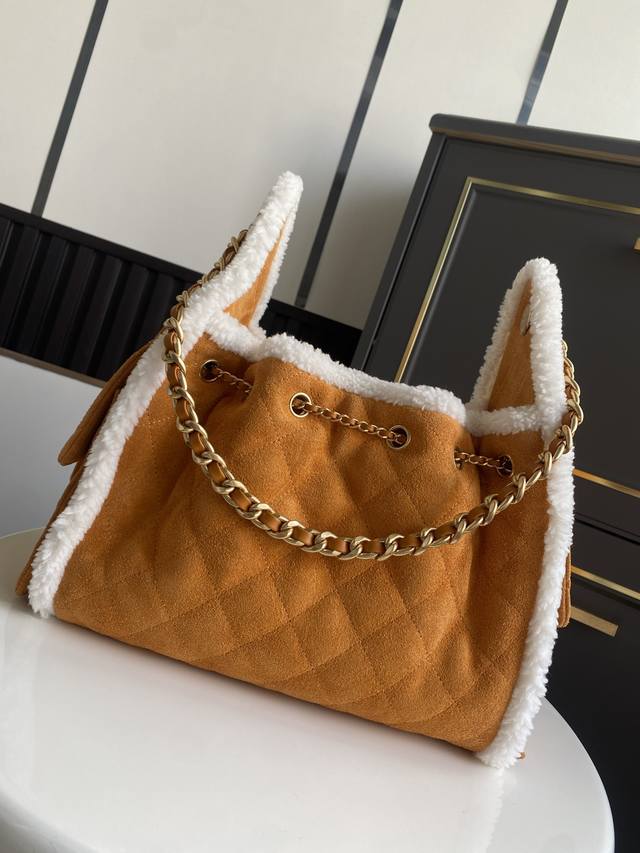 现货~ 秋冬走秀系列 25C 秋冬走秀款来了 这个购物袋别叫特别的是采用意大利进口牛皮材质 包边围绕秋冬特制毛毛装饰 单肩背特别好看 可以收缩的五金 尽显别致