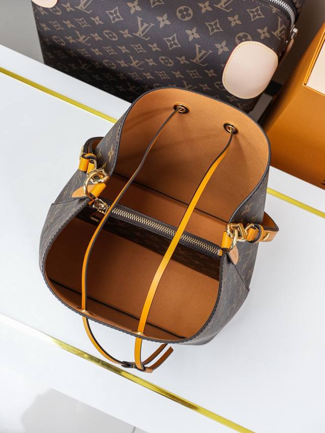 动态163C01芯片 M43430老花黄 顶级原单M44022 独家背景实拍 本款 NéOnoé 水桶包以 1932 年 Gaston-Louis Vuitton 为承运香槟酒打造的酒袋为蓝本,令经典设计焕发摩登新意。Monogram 帆布塑造利落构型,缤纷皮革元素和粘合内衬彰显考究细节,可调节肩带实现肩背和斜挎选择。 26.0 X 26.0 X 17.5 厘米 长 X 高 X 宽 Monogram 涂层帆布 牛皮革饰边 织物内衬 金属件 抽绳 金属孔眼 隔层 中央拉链贴袋 可收纳智能手机、Victori