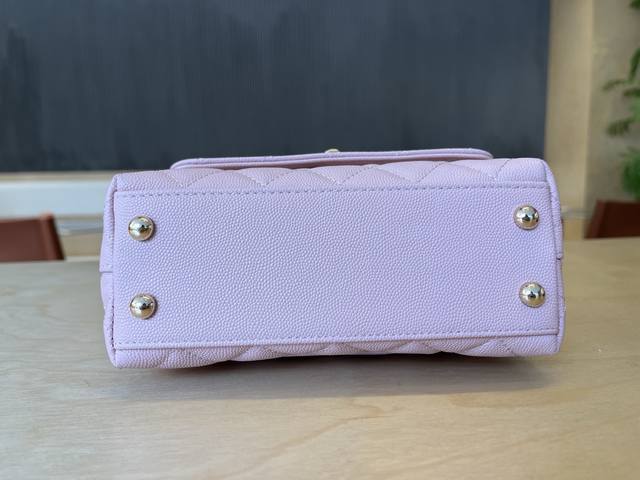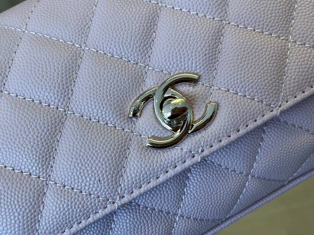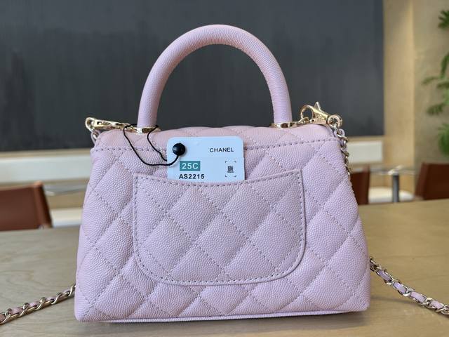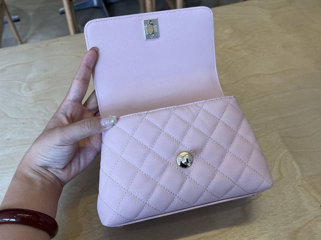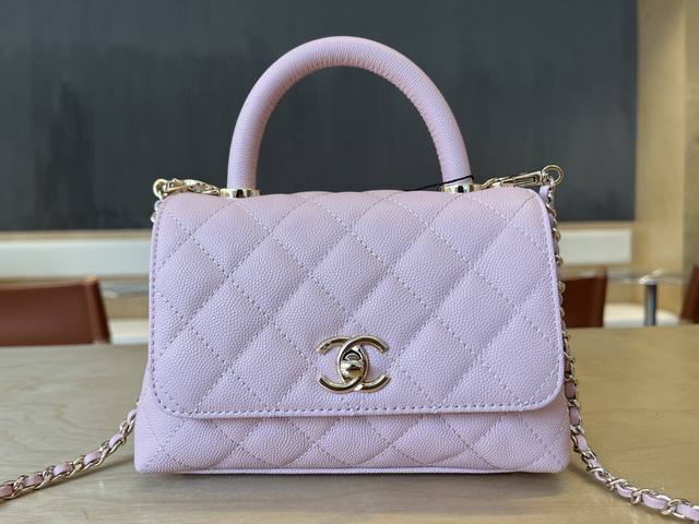 / As2215车边里皮 Chanel 新款 14K淡金色车边里皮 这一季的Cocohandle内里全皮 进口小颗球纹牛皮手提口盖包 全新版本经典王炸 :19Cm