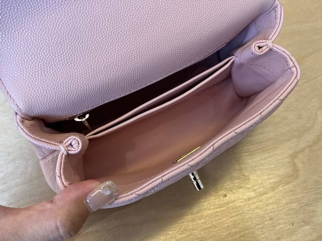 As2215车边里皮 Chanel 新款 14K淡金色车边里皮 这一季的Cocohandle内里全皮 进口小颗球纹牛皮手提口盖包 全新版本经典王炸 :19Cm