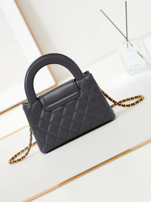 As2215车边里皮 Chanel 新款 14K淡金色车边里皮 这一季的Cocohandle内里全皮 进口小颗球纹牛皮手提口盖包 全新版本经典王炸 :19Cm