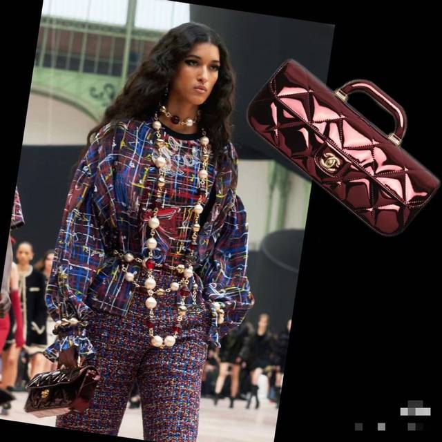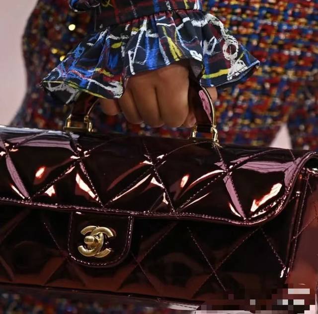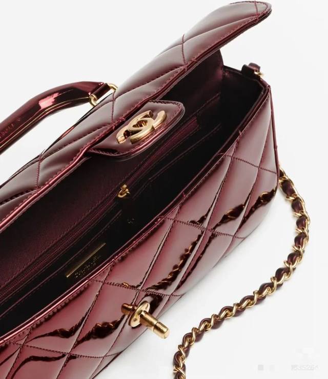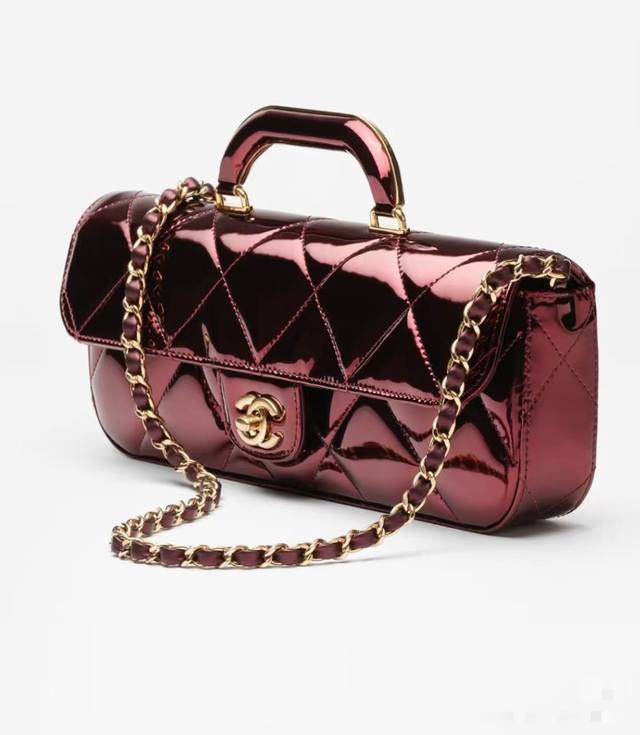 顶级原单 咖啡酒红色 大號尺寸Ohanel口盖包25K秀场同款金色漆皮手柄口盖包漆皮镜面材质真的是相当吸睛,就好像美少女战士的包包一样自带光芒,甜美与酷感并存!