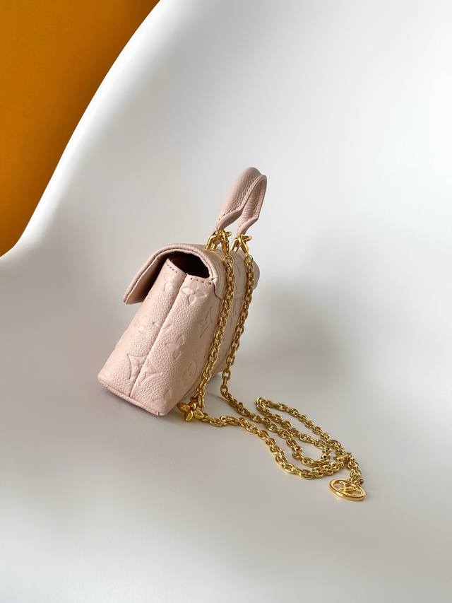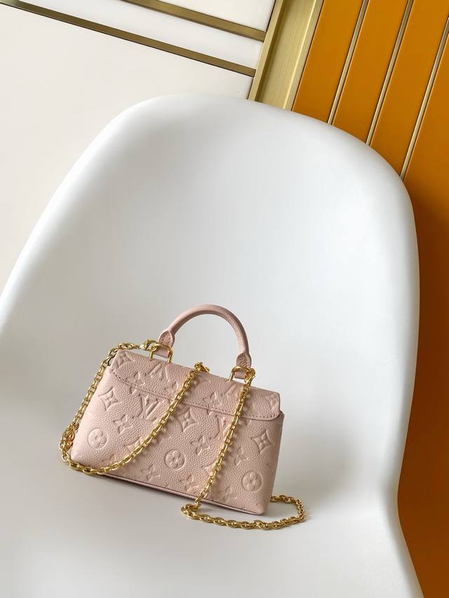 210C01动态芯片 顶级原单 M12145米白 M12144黑色 M12211蓝色 M27043粉色 本款 Nano Madeleine 手袋以 Monogram Empreinte 皮革演绎 Madeleine 手袋的袖珍版本,搭配经典 S-Lock 锁扣和点缀 Lv Circle 标识的可拆卸链条。充裕空间可容纳日常所需,手提、肩背或斜挎皆宜。 12.5 X 6 X 21 厘米 高 X 宽 X 长度 软粒面牛皮革 牛皮革饰边 织物内衬 金属件 贴袋配有卡片夹层 风琴隔层 S-Lock 锁扣 链条:Z