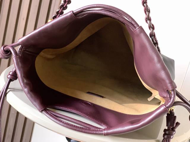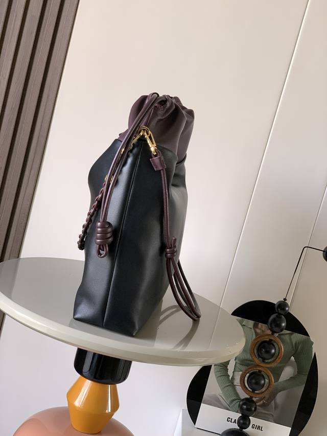 / 原厂皮 新款新柔软双色纳帕小羊皮 Flamenco Purse 托特包是柔软实用的包款采用直式设计、历史悠久的抽绳、绳结和与对比色顶部搭配的同色系甜甜圈链带此版
