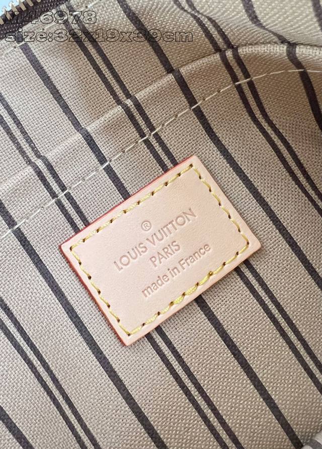 原厂皮 独家实拍 M46978 本款 Neverfull 大号托特包为柔软 Monogram 帆布勾勒牛皮革饰边,于宽敞构型融入缤纷织物内衬。两侧饰带无论束紧或舒展,均可展现别样风采。纤细手柄方便肩背或肘挎,可拆卸拉链袋可用作手拿包或口袋。32 X 19 X 39 厘米 高 X 宽 X 长度