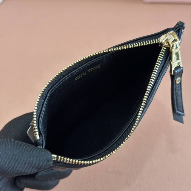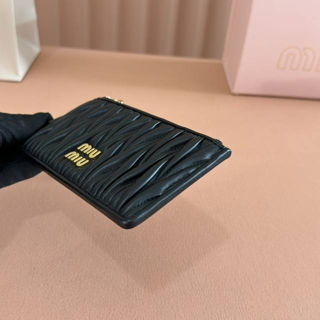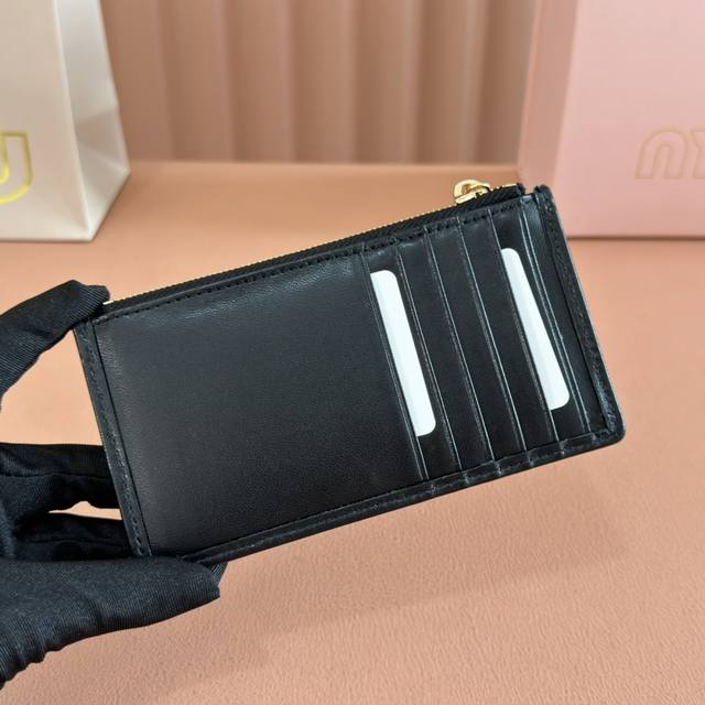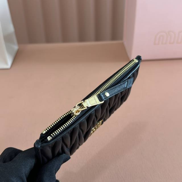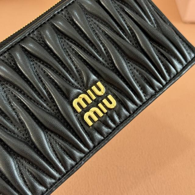 / 配置专柜全套包装 Mmpocket Wallet最新版本卡包,型号:5Mb006克顶级进口小羊皮材质Matelasse花纹图案,拉链拉合,内里Miu标识烫字背面