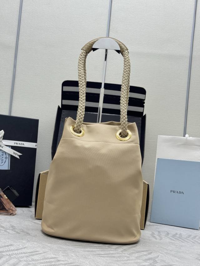 新款水桶包1Be082走秀款 这款Re-Nylon 手袋的設計采用尼龙面料和小牛皮。獨特的組合添上迷人點綴。滑動式繩索手挽凸顯這款手袋的靈活百搭,方便手提或肩背 斜跨,顶级五金。容量空间大,非常休闲时尚,又是一款永久不过时爆款,宝宝们,赶紧入手吧 尺寸:长23.5X高28X底16.5Cm