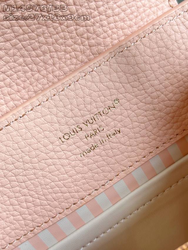 出厂价P 顶级原单 M14976裸粉 小号 這款Ivy系列的Capucines Bb綴有手繪琺瑯花卉圖案裝飾,營造浪漫風格的氛圍。包包以Taurillon皮革製造,綴有金色的Lv Initials標誌向品牌的精湛工藝致敬。這款包包尺寸小巧,適合存放日常必需品,可呈現兩種風格的造型,具有間隔分明的內層,可作多種不同的攜帶方式。21 X 13.6 X 8 厘米