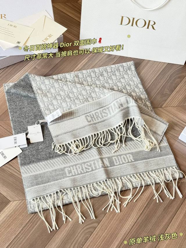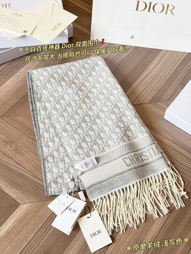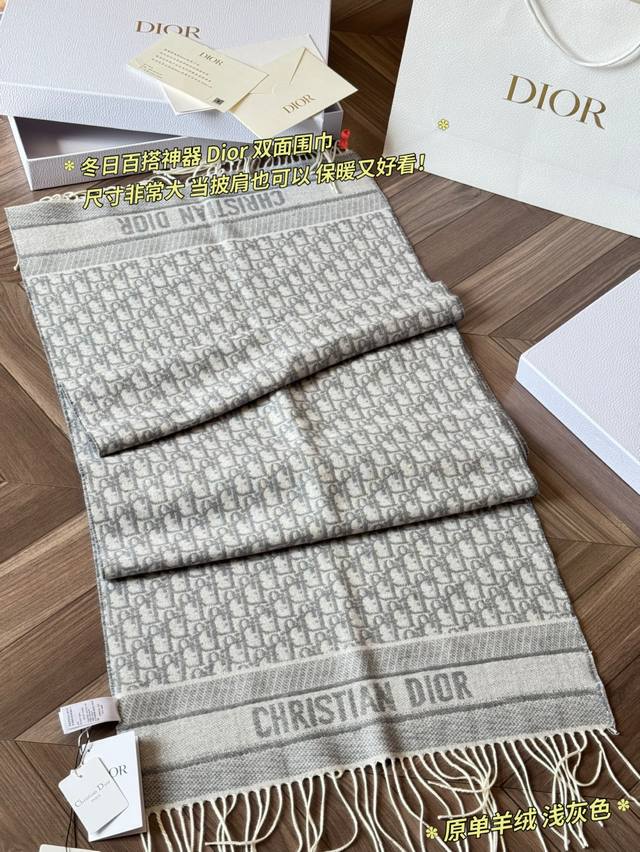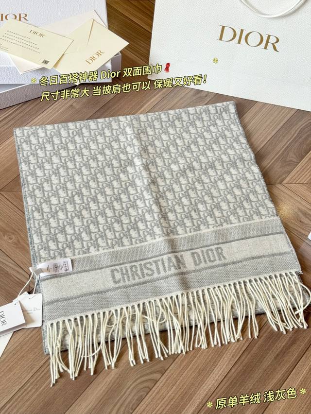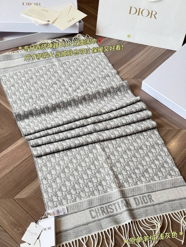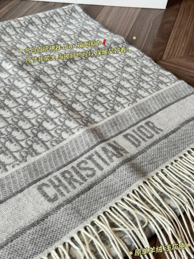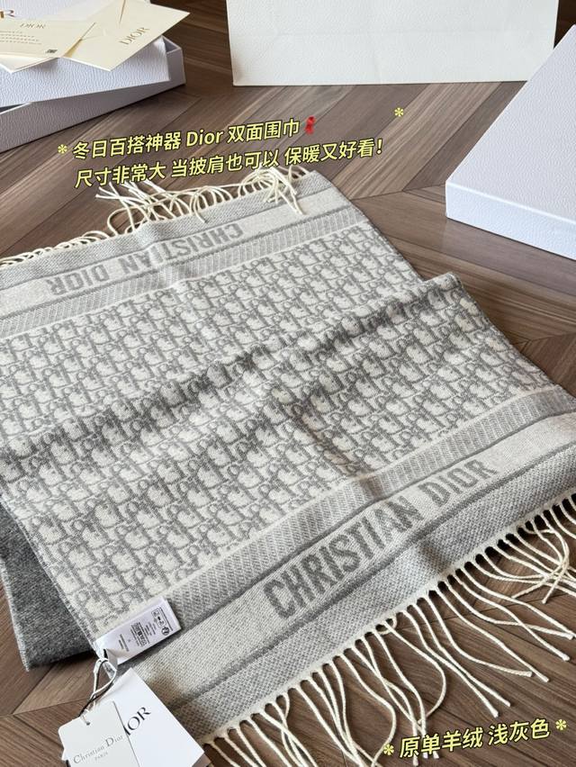 / 经典原单 羊绒 Dior Oblique羊绒围巾,100%山羊绒,柔软细腻,秋冬必备!双面设计,一面灰色Oblique老花,一面纯色,搭配“Christian