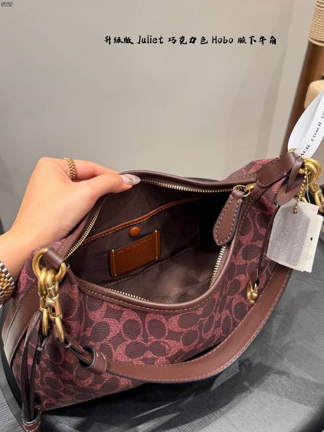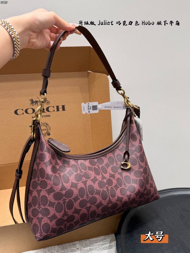 大号 礼盒包装 升级版 蔻驰Coach Juliet新配色|秋冬的绝美打开方式 Hobo腋下包牛角流浪包 爆款朱丽叶又出新配色啦依旧是有25&30两个Size 浓郁巧克力色系瞬间提升穿搭质感! 金属链条+经典印花,低调又高级 斜挎 单肩都好看,秋冬配深色系大衣绝配! 姐妹们冲早秋第一只氛围感包包 尺寸 小号25*16Cm 大号30*24Cm