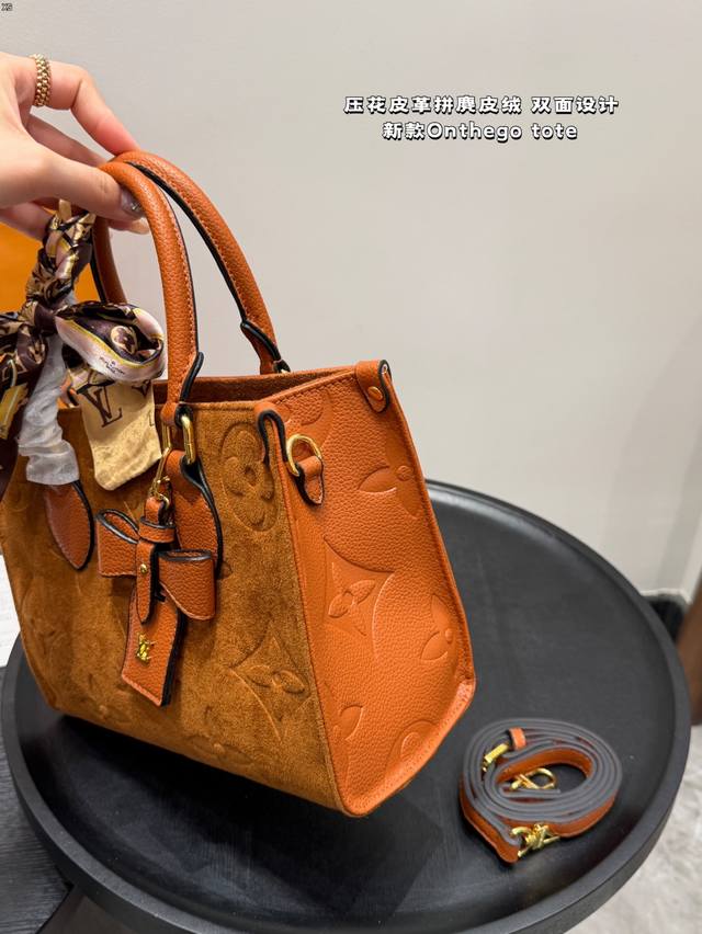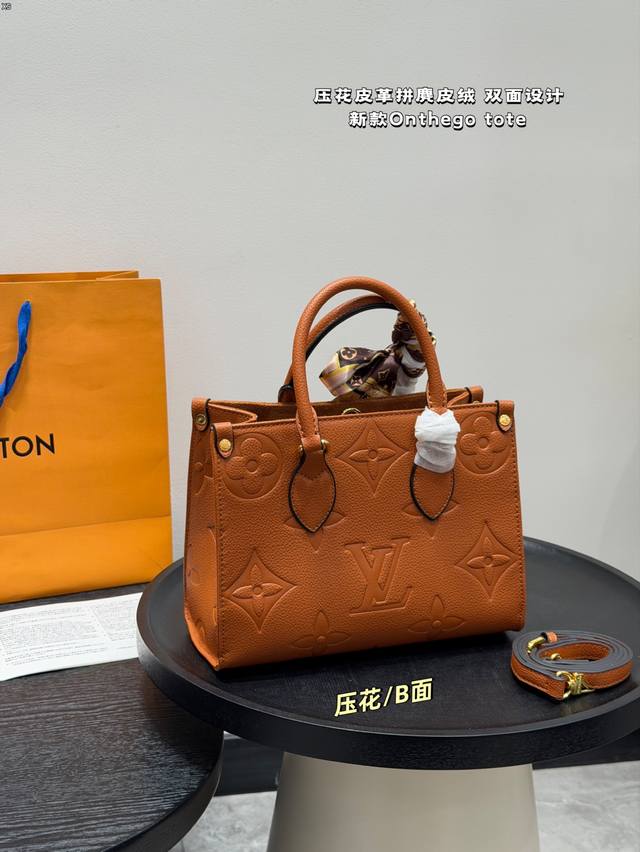 带盒子 Lv 压花丛林Onthego 小号Tote托特包 压花皮革拼麂皮绒 双面设计 更具风格的Size 可单肩背可斜挎可手提 减龄设计 增添几分少女俏皮感 尺寸:25*20Cm