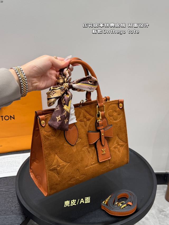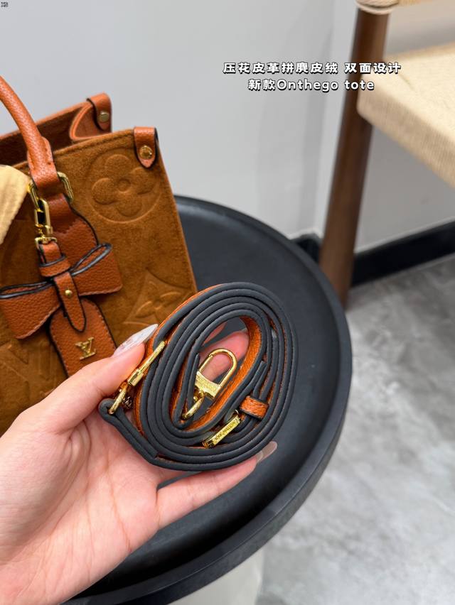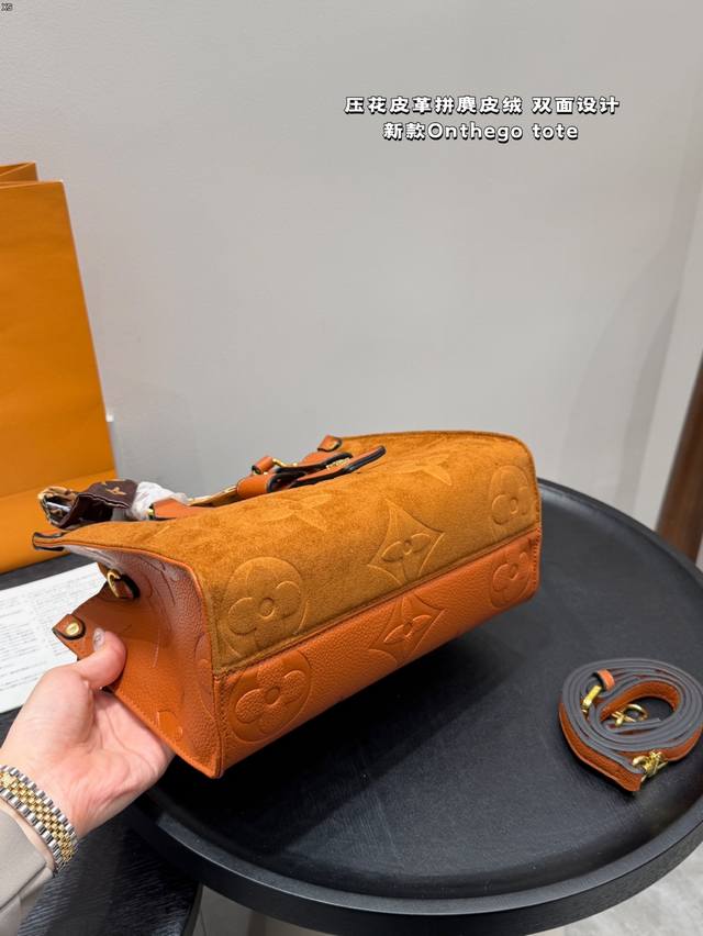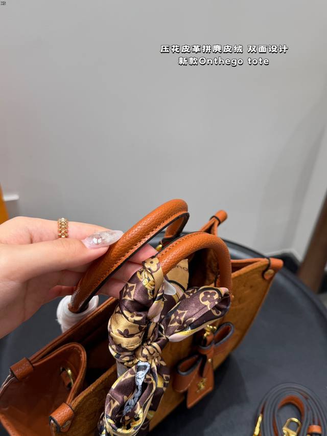 带盒子 Lv 压花丛林Onthego 小号Tote托特包 压花皮革拼麂皮绒 双面设计 更具风格的Size 可单肩背可斜挎可手提 减龄设计 增添几分少女俏皮感 尺