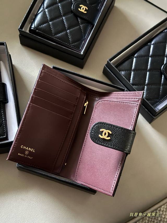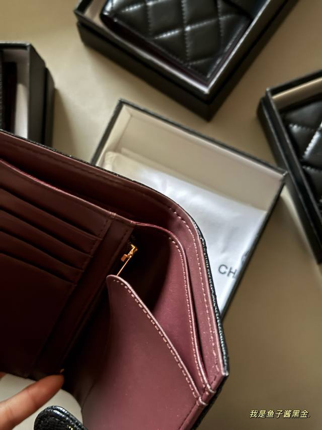 / 配盒 Size:15.5*11Cm 小香家 鱼子酱牛皮 羊皮中长夹 Chanel 钱包 里外全皮! 头层牛皮! 日常出门零钱和卡足够用的一款! 包装很高级