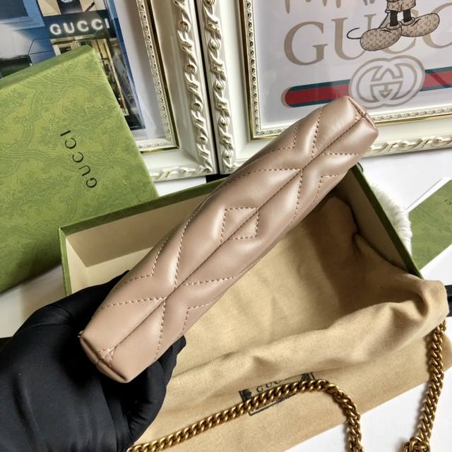 顶配版 原厂皮 配绿盒G家爆款,专柜品质,正品原单,实物实拍。款号:443447克皮。G链条包采用绗缝真皮精心打造,背面配以人形花纹设计和Gg标志。6个卡片隔层和1个拉链内袋。尺寸:22厘米 宽 X 13厘米 高 X 3.5厘米 深 白原厂皮,奶茶原厂皮,克原厂皮